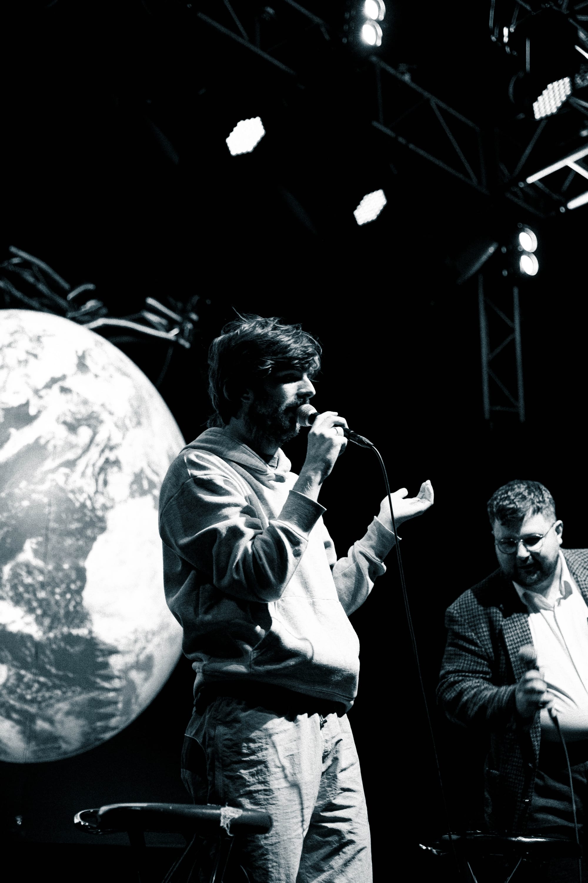 Sweeney was clearly a little nervous when he stepped up to that stage. The tape had just stopped on a presentation of the record with full-length visuals by Diarmuid Farrell, and there we were as silhouettes in front of two giant emoji: 👨‍🦳🌍.