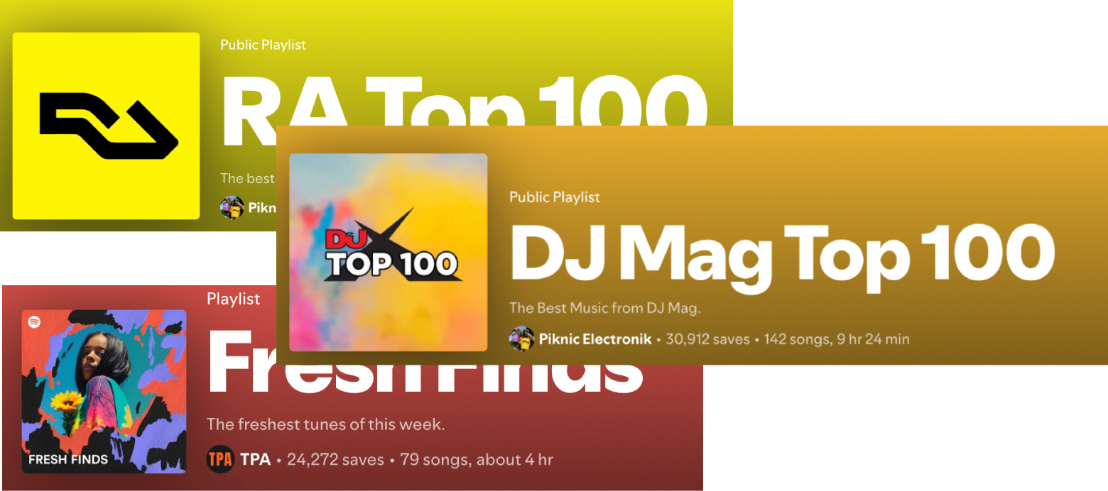 Kawaii Hoe's music shows up in some weird places. They have 30,000 monthly listeners on Spotify. Their music shows up in playlists which pretend to be other playlists, with titles like "DJ Mag Top 100" and "RA Top 100" or a blatant rip-off of Spotify's Fresh Finds by probable scam merchants TPA (The Playlist Agency). It's hard to know what's going on there. It's an entirely different article I'll do some day, but artists: never pay any organisation that offers playlist placements for money. This is a scam and it puts your music's position on streaming platforms at risk.